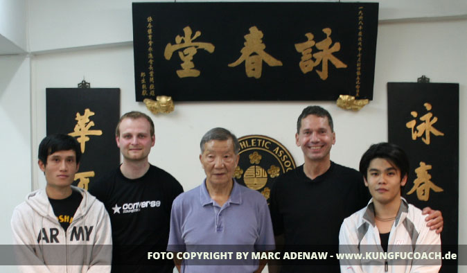 Here you see a few Photos taken in the time between 2007 and 2020 in Foshan in the Ip Man museum, in Hong Kong in the Ving Tsun Athletic Association, founded by Grandmaster Ip Man and in Ip Mans appartment. Zu sehen sind Grandmaster Ip Ching mit dessen Schülern, darunter auch der Autor der Reihe Das Wissen der Meister, Sifu Marc Adenaw und Sifu Peter Graun.